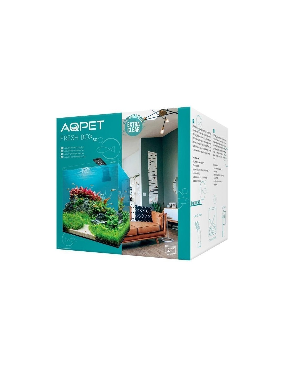 Troviamo, infatti, inclusi nel FRESH BOX 30, la vasca 30x30x30 cm di 27 litri con vetro spesso 5mm, una lampada SUNNY FRESH dotata di 20 led bianchi che consentono la fotosintesi e la naturale crescita delle piante. Il filtro esterno a zainetto ANGEL, molto piccolo ed efficiente e tutto il kit per allestimento compreso di legno naturali, rocce e sabbia, così da dover solo assemblare il vostro acquario e godervi il vostro piccolo angolo di paradiso.