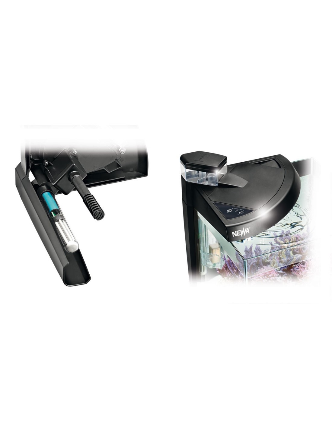 Il cuore dei nuovi acquari NEWA More è il sistema filtrante angolare brevettato che riassume ogni soluzione necessaria a garantire un filtraggio professionale, una climatizzazione efficace, un potente ricircolo d'acqua ed un'illuminazione a LED ottimale dai consumi estremamente contenuti.