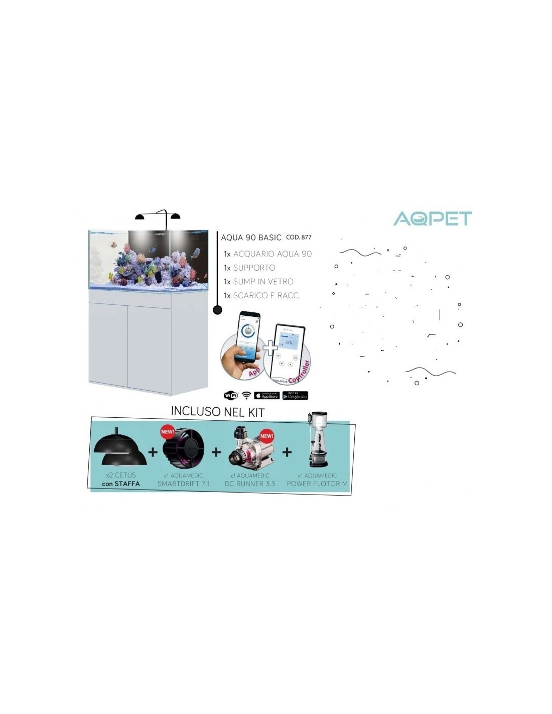 AQPet Kit Acquario Acqua 90 Reef in vetro extrachiaro , supporto nero laccato, filtro sump, accessoriato di tutta la tecnica