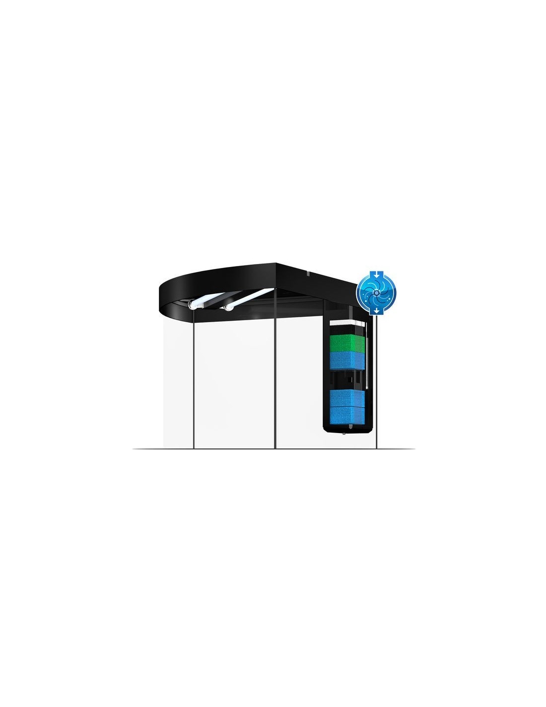 Per garantire una filtrazione ottimale dell'acqua, l'acquario TRIGON 190 LED è dotato dell'efficientissimo sistema Bioflow M. Questo sistema con elementi filtranti interni, che coniuga efficienza e sicurezza, rappresenta il vero cuore degli acquari JUWEL. Basato sul principio secondo cui "L'acqua rimane nell'acquario!", rappresenta il modo più sicuro di filtrarla. Il sistema Bioflow M è dotato di cinque efficientissimi elementi filtranti e di una pompa di ricircolo Eccoflow 600, silenziosa e potente.
