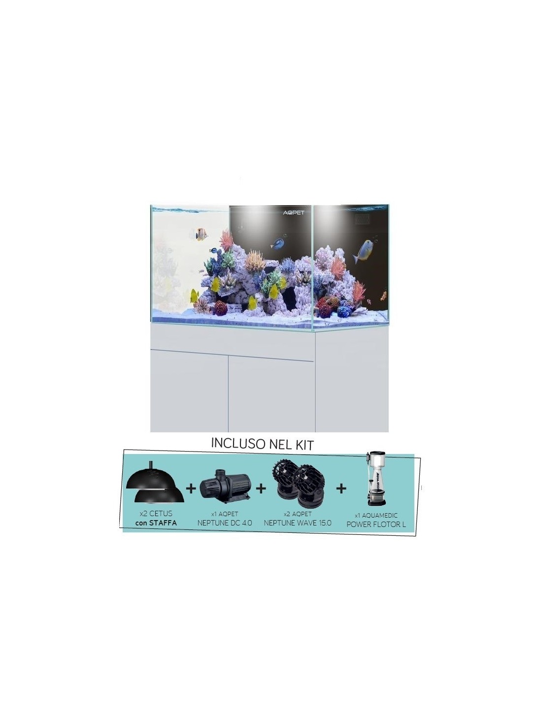 AQPet Kit Acquario Acqua 120 Reef in vetro extrachiaro supporto nero laccato, filtro sump, accessoriato di tutta la tecnica