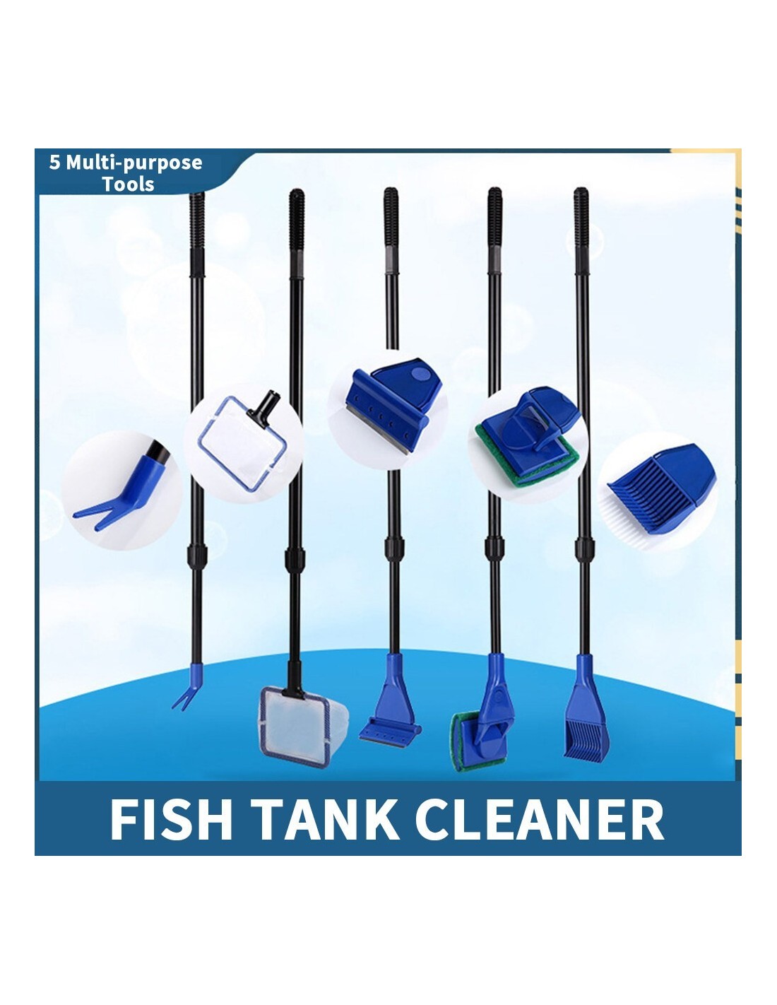 JENGCA SET TOOL 5 IN 1 RASCHIETTO PULIZIA ACQUARI 45 cm lunghezza