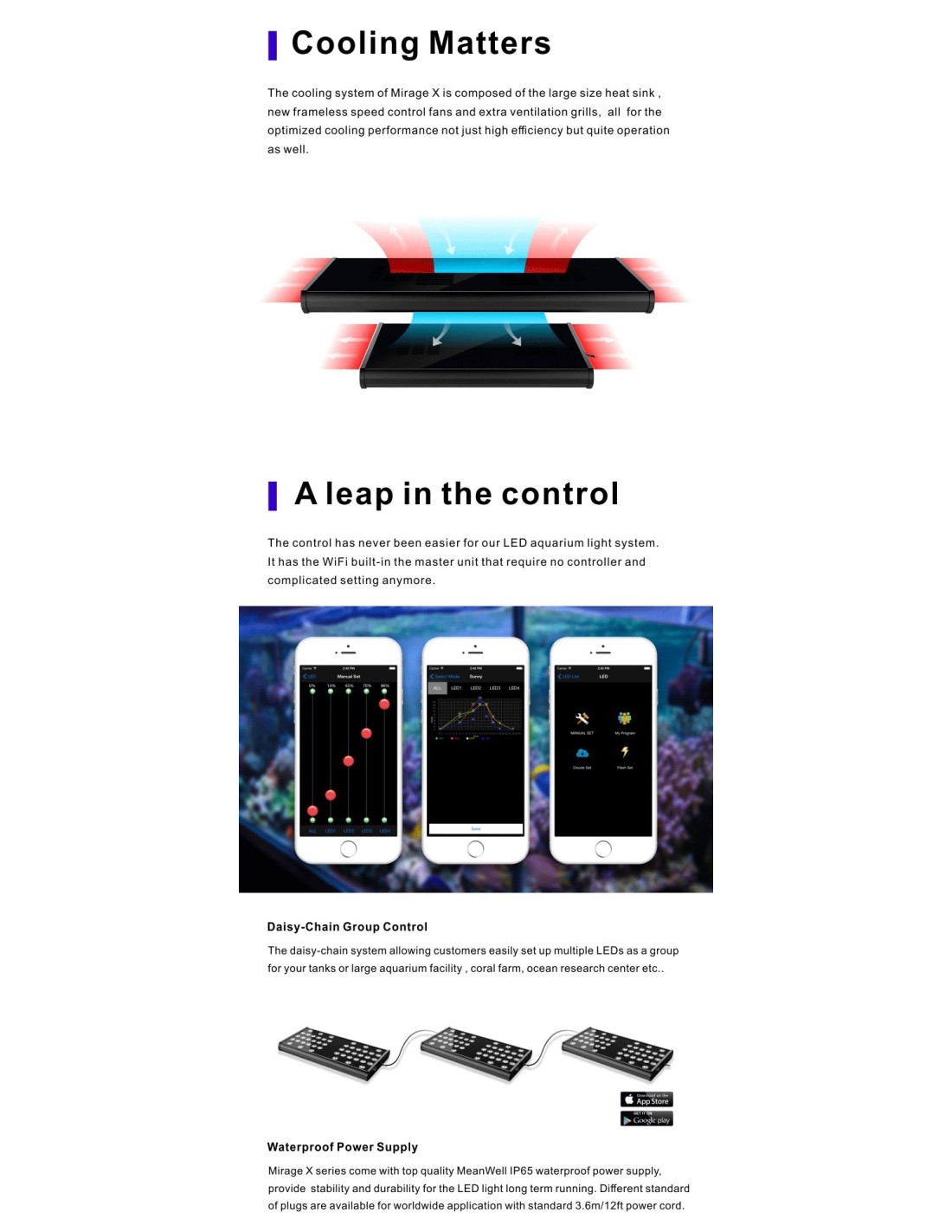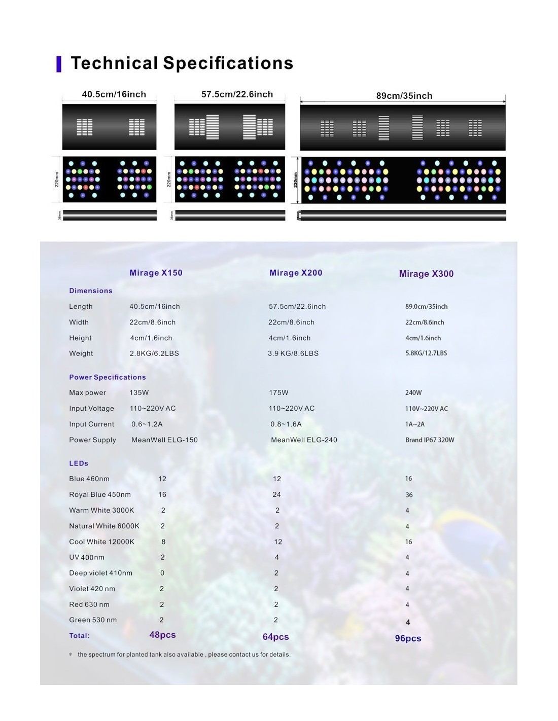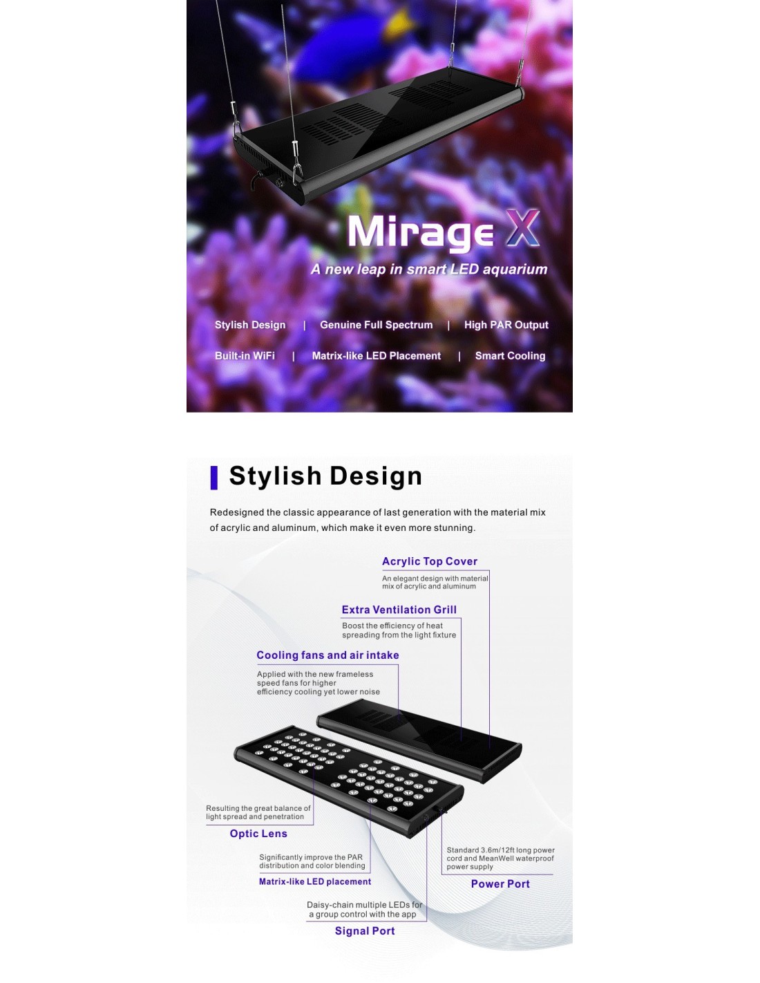 led zealMirage X 200 è una plafoniera Led (che monta i migliori led nel commercio mondiale denominati CREE), di ultimissima generazione per Acquari d'acqua dolce e di barriera con coralli molli e duri Lps & Sps.