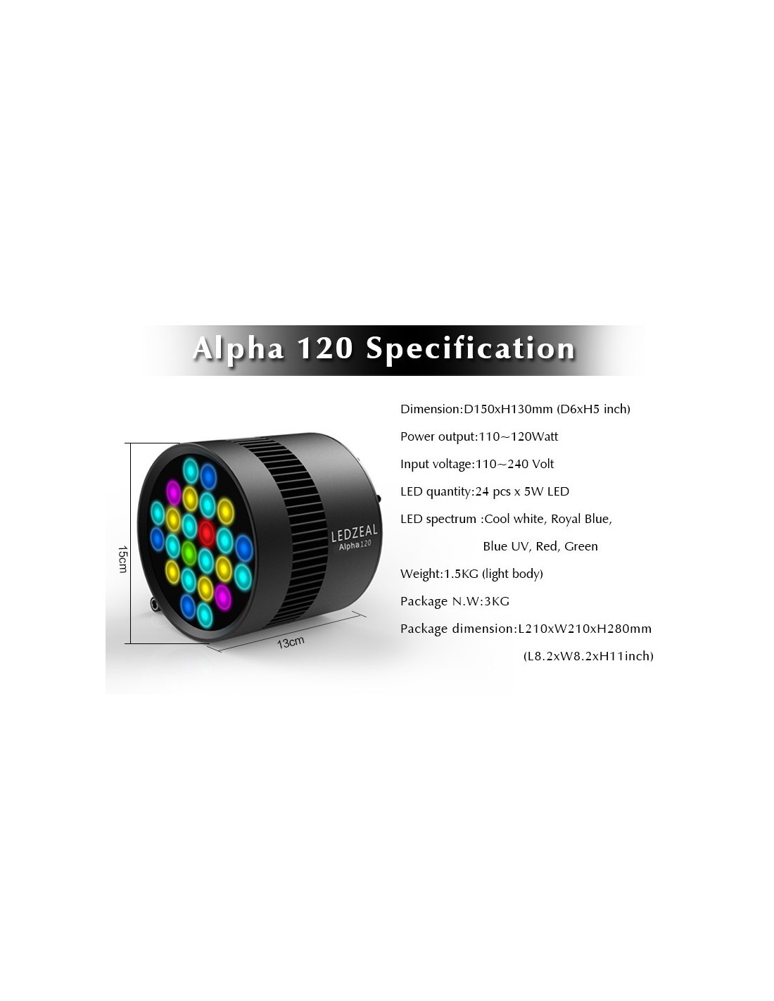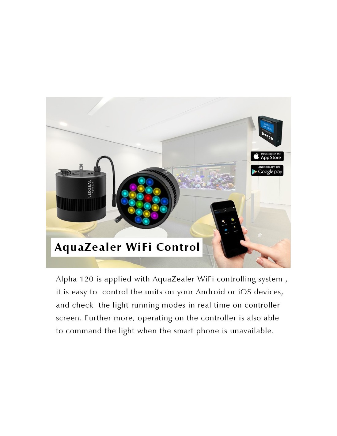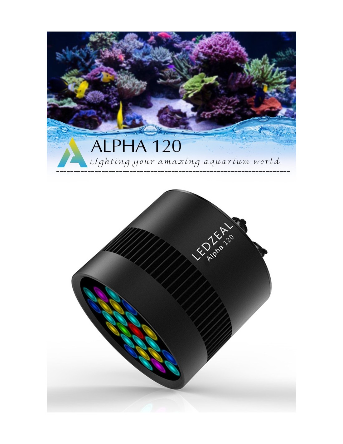 Punto TropicaleAlpha-120 è la nuova luce a Led per Acquari d'acqua dolce e di barriera con coralli mollie duri Lps & Sps.