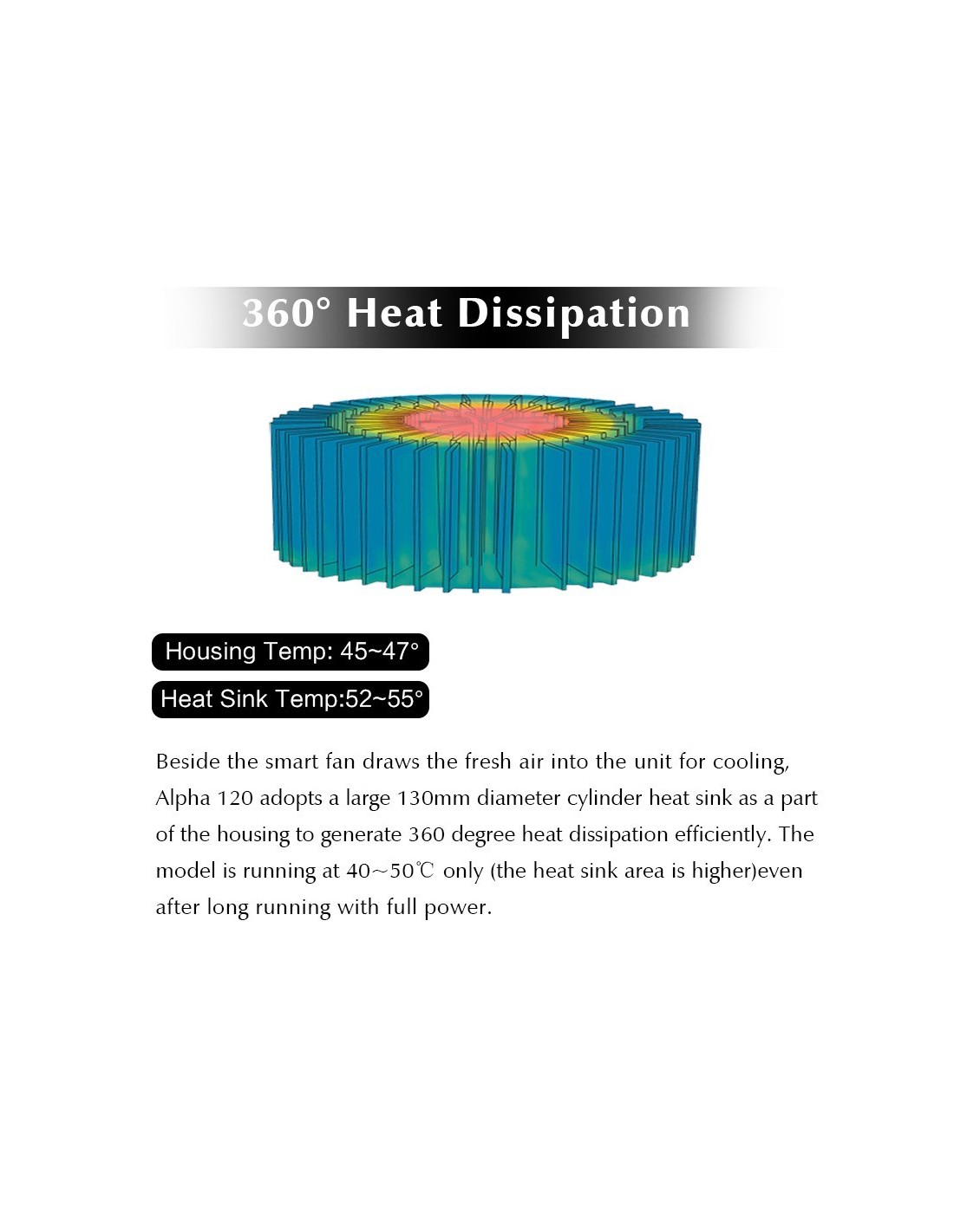 Ampia copertura - Alta potenza di uscita - Dissipazione di calore a 360.