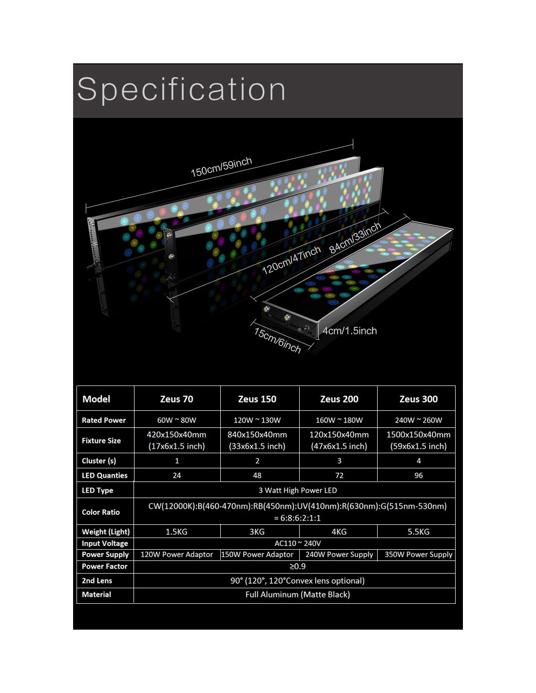 LED Type: 72pcs*3 watt (Epiled/Epistar/Bridgelux)